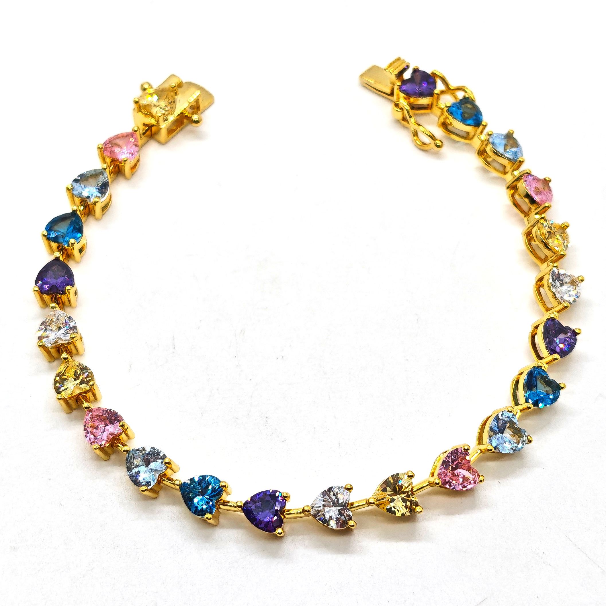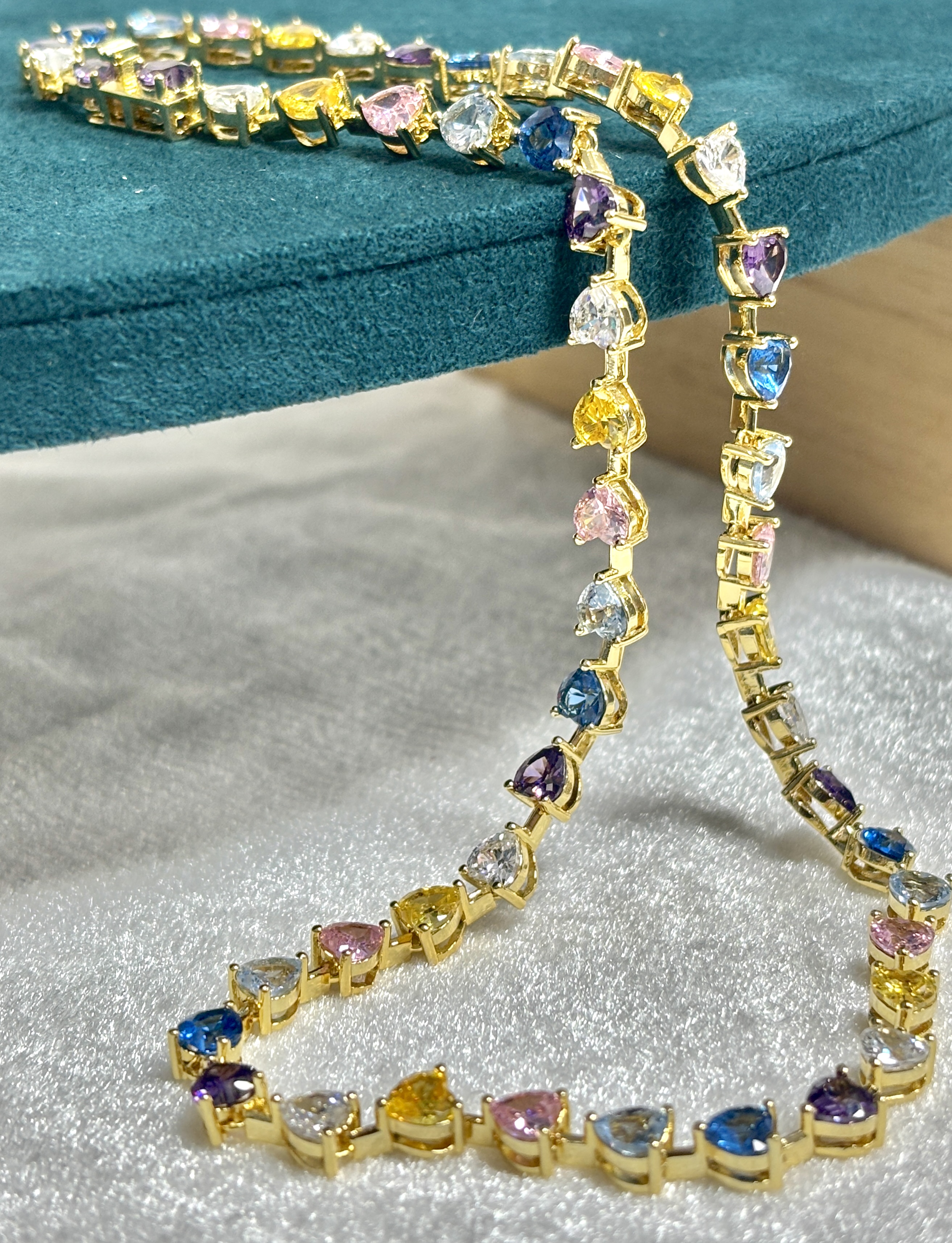 Heart Cut Clear Cubic Zirconia Rainbow Tennis Necklace